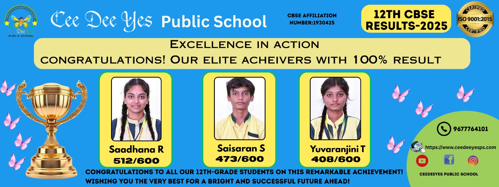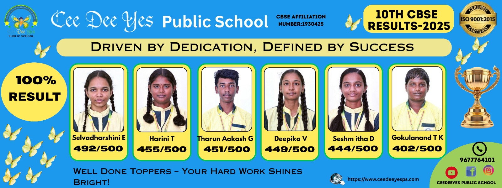 CeeDeeYes Public school (CDYPS), Chennai located in 56 acres of well-maintained township The Cee Dee Yes, Chennaipattinam at Ammapet, Chengalpattu District. CDYPS, sprawls over 1 acre and has an idyllic setting amidst lush green and a pollution free atmosphere. It is strategically located between the two growth corridors GST and OMR. CDYPS provides excellent standard of education in a safe, supportive and friendly environment that encourages and nurtures students to develop their true potential through a rich academic and value-based programme combined with a variety of co-curricular activities. CDYPS contains commodious classrooms, equipped and fully furnished library, well defined laboratories, voluminous auditorium and widespread playground. The school follows the CBSE curriculum which has the strong impression on life skills, numeracy development with excellent language skill foundation.
